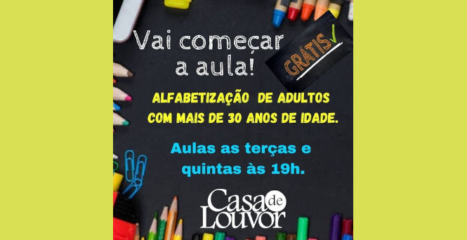 Começam dia 09 de setembro as aulas para alfabetização de adultos com mais de 30 anos.