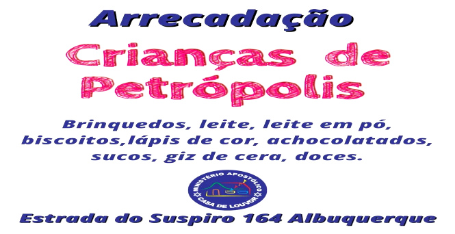 Pessoal, a Casa de Louvor vai estar focada agora nas crianças. Por isso, não estaremos recebendo doações de roupas e calçados, a não ser que seja exclusivamente de crianças.
