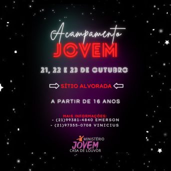 Acampamento Jovem NotíciasPor20 de setembro de 2022 Nos dias 21, 22 e 23 de outubro de 2022, acontecerá nosso 1º Acampamento Jovem da Casa de… Detalhes