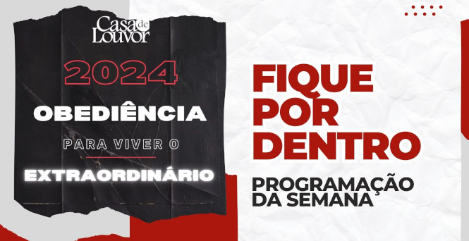 Confira abaixo, a programação dos cultos da 1ª semana de 2024 da Casa de Louvor:
