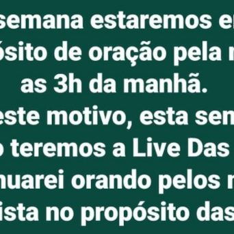 Esta semana estaremos em um propósito de oração pela nação às 03:00h da manhã. Por este motivo, não…