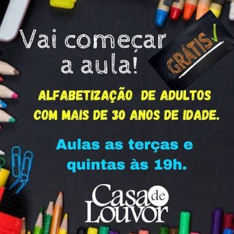 Começam dia 09 de setembro as aulas para alfabetização de adultos com mais de 30 anos. As aulas…